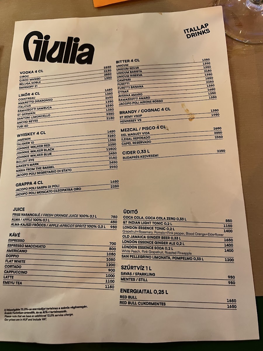 Welcome to GIULIA, a charming Italian gem nestled in the heart of Budapest at Retek u. 12. This delightful eatery is renowned for its warm atmosphere and attentive service, making it an ideal spot for both casual lunches and intimate dinners.